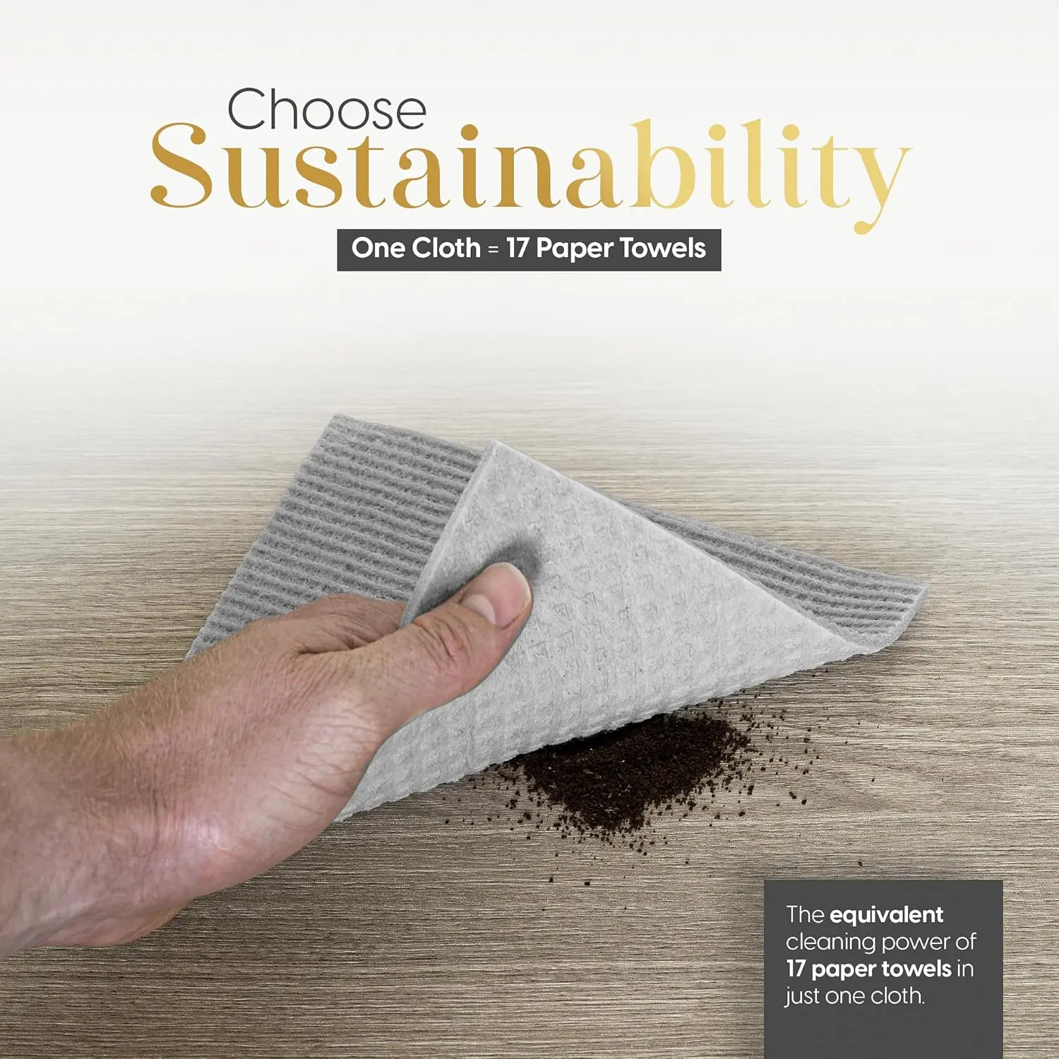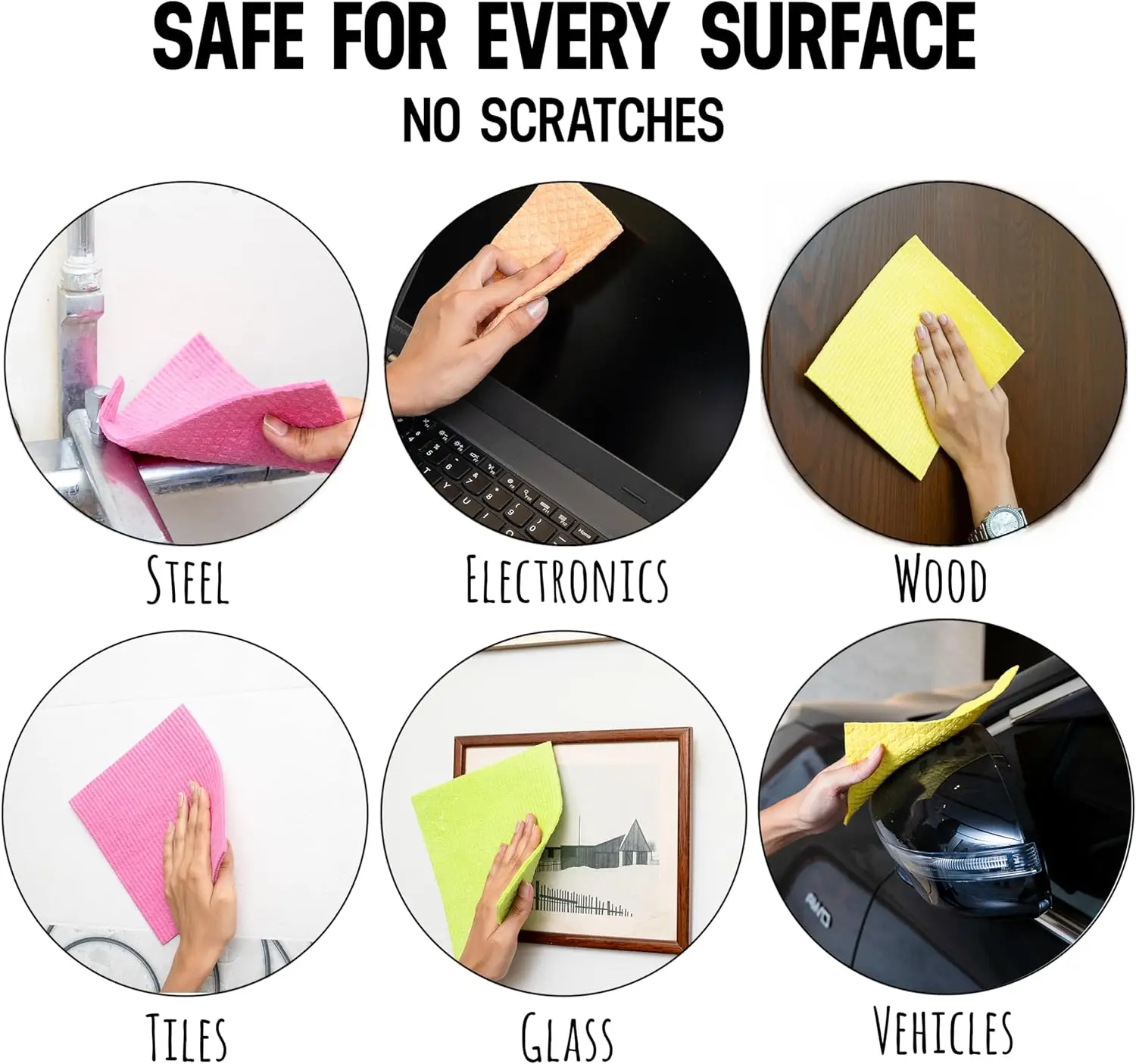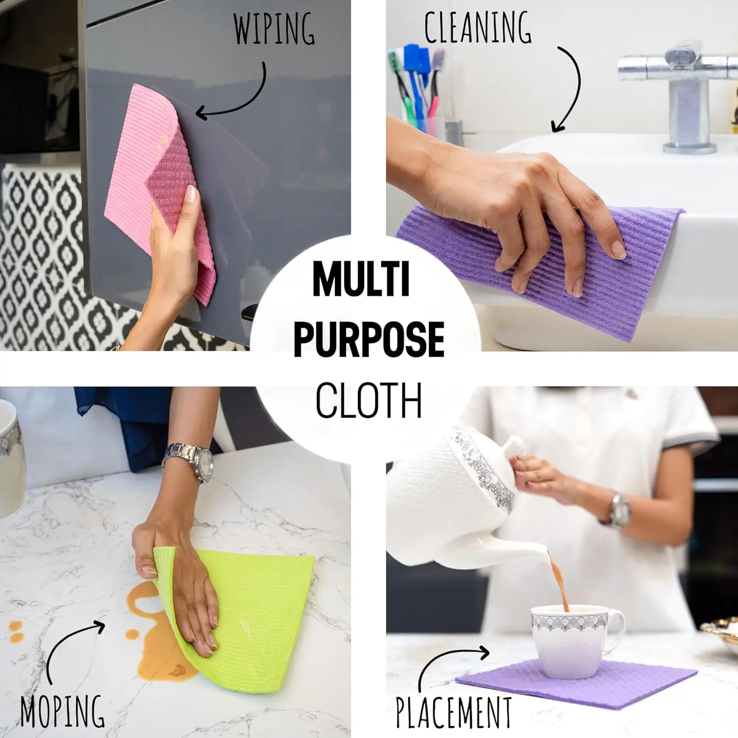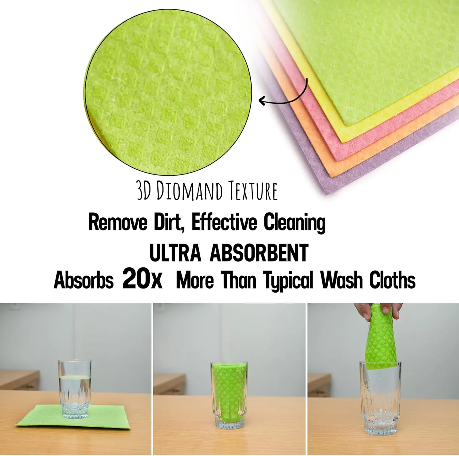 VERSATILITY: Our disposable dish cloths for washing dishes are perfect for various cleaning tasks like scrubbing dishes, wiping countertops, or cleaning glass surfaces, these Swedish dish towels for kitchen provide a streak-free shine. Use our kitchen cloths for dishes for an effective clean. These reusable cloth paper towels are also safe for marble, stainless steel, and wood. These sponge cloth kitchen reusable work perfectly for all purposes. Use our dish wash cloths for a sparkling clean.