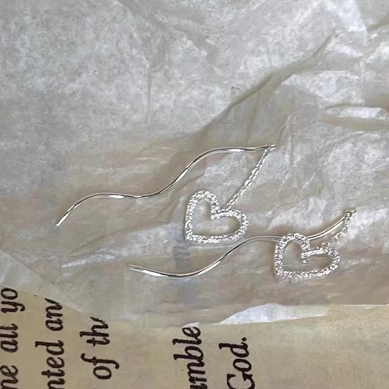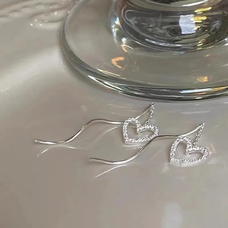 Stainless Steel Trend Long Wire Tassel Thread Chain Climb Star Heart Beads Pendants Drop Earrings Women's Wavy Ear Line Jewelry